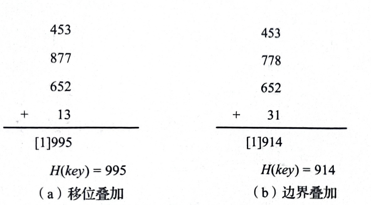 将关键字分割成位数相同的几部分,然后取这几部分叠加和作为散列地址。根据数叠加的方式,可以把折叠法分为移位叠加、边界叠加。